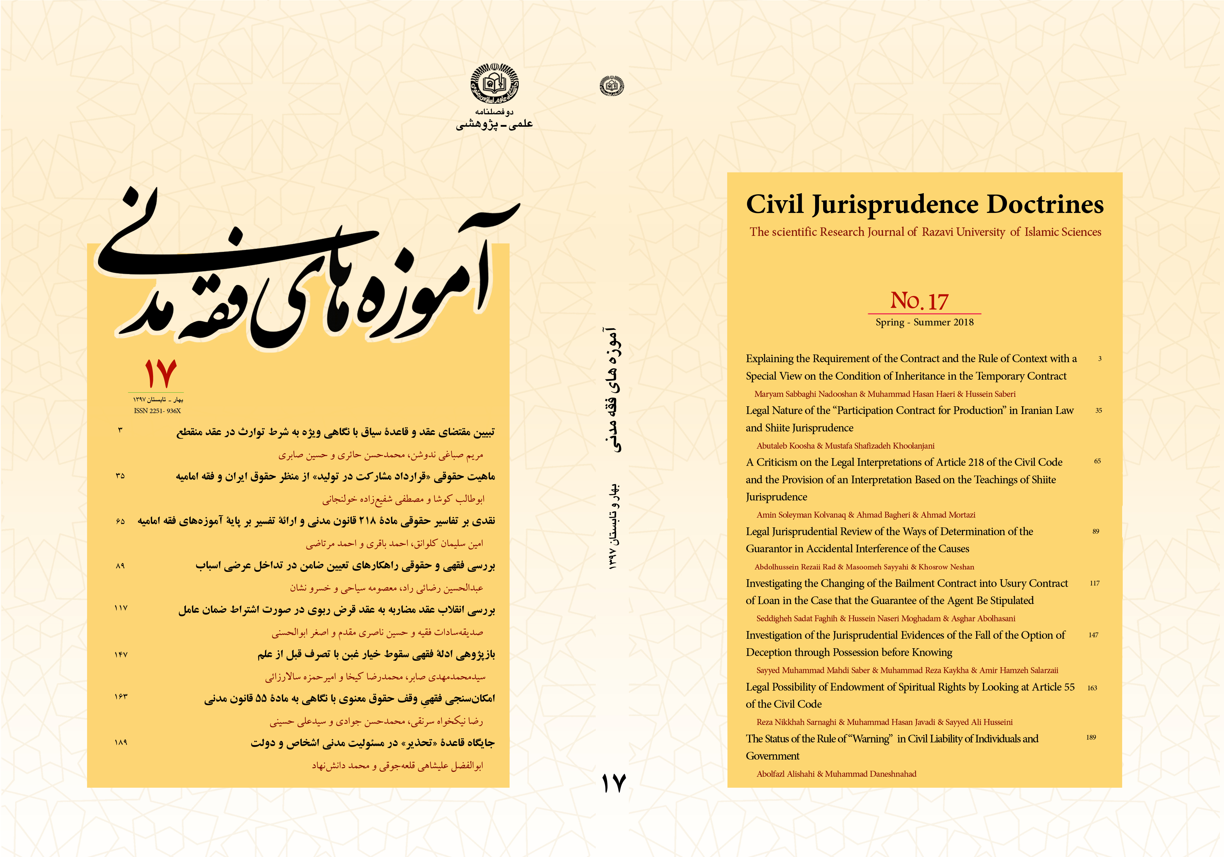 . پشت جلد. آموزه های فقه مدنی, 1397; 10(17): 0-0.